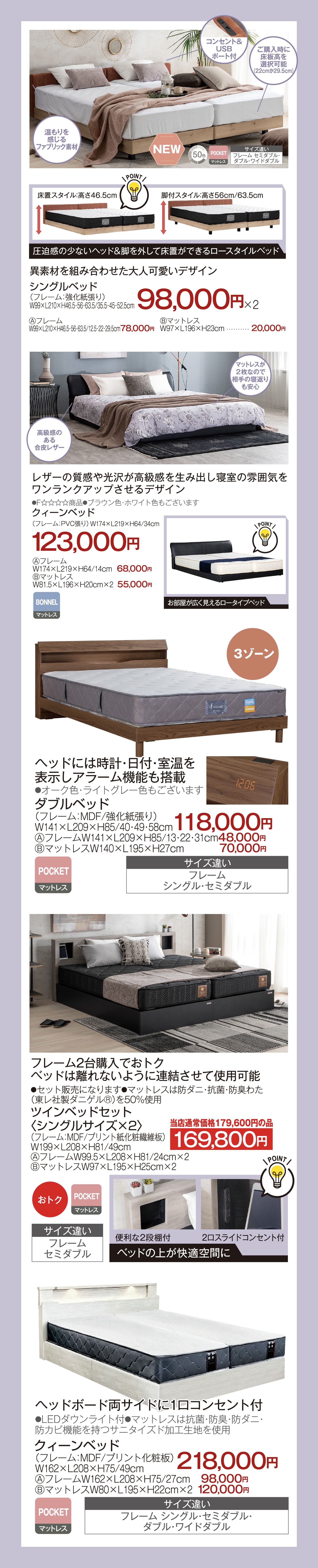 シングルベッド クイーンベッド ダブルベッド ツインベッドセット(シングルサイズx2) クイーンベッド